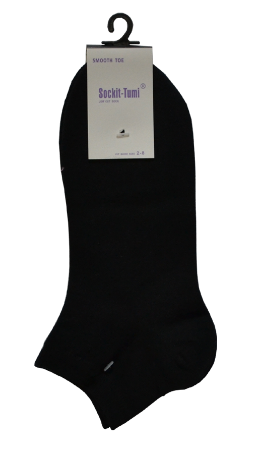 Color: Black Size Range: 2-8 Materials: 95% COTTON and 5% Spandex Smooth Toe Minimum Order: 1 Dozen Description : Women’s low cut socks