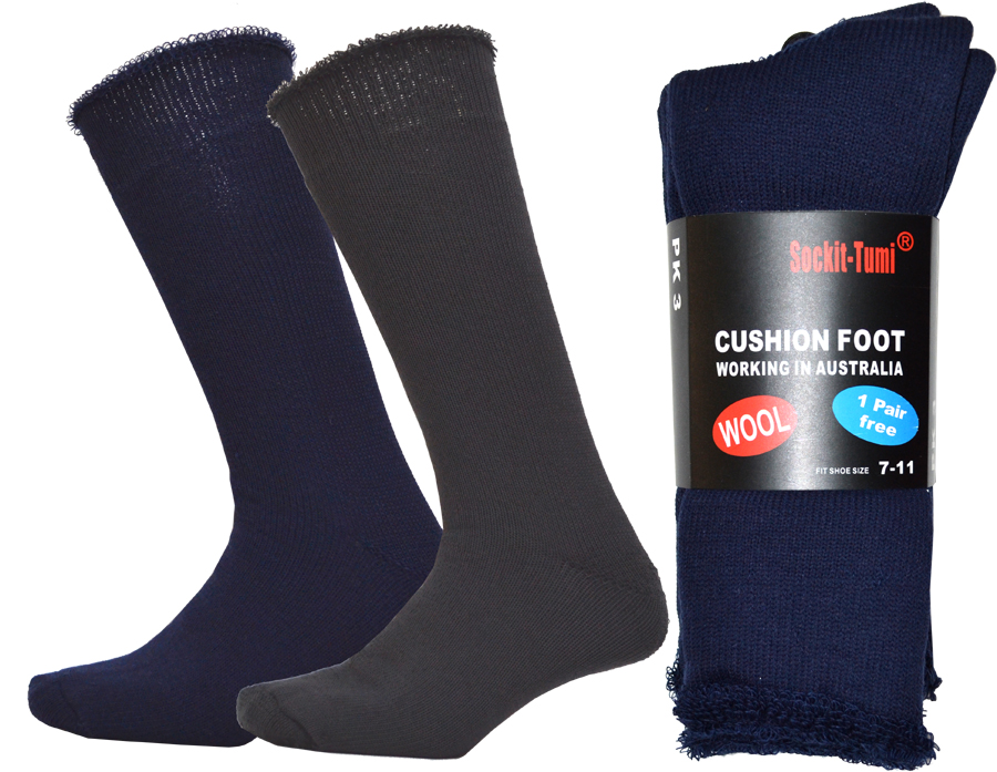 Color: Navy Blue and Grey Size Range: 7-11 Packed: 3 pairs Navy Blue and 1 pairs Grey for free Materials: WOOL 80%/ACRYLIC 15%/ELASTANE 5% Minimum Order: 4 Pack Description: Men’s wool work socks (pack of 4)