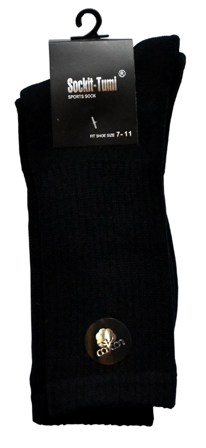 Color: Pure Black Size Range: 7-11 Materials: 95% COTTON/5% NYLON & ELASTANE Minimum Order: 1 Dozen Description : Men's cotton sports socks
