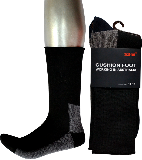 Color: Black Size Range: 11-14 Materials: COTTON/ACRYLIC/NYLON Minimum Order: 1 Dozen Description : Men's Work Socks