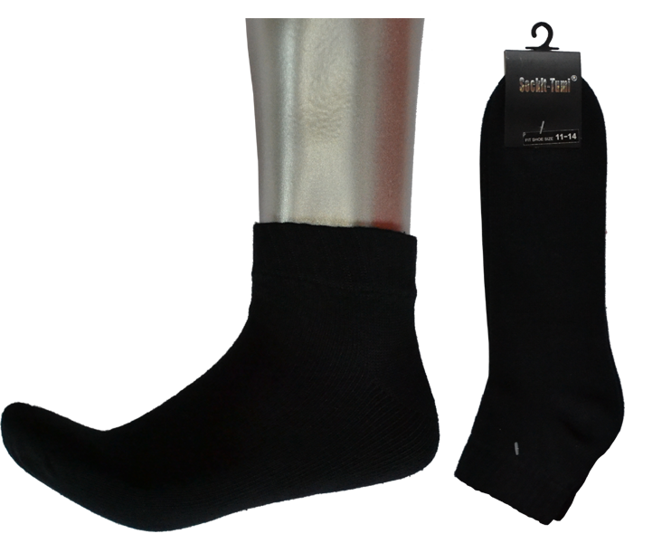 Color: Black Size Range: 11-14 Materials: 95% COTTON/5% SPANDEX Minimum Order: 1 Dozen Description : Men's cotton 1/4 ankle socks (King Size)